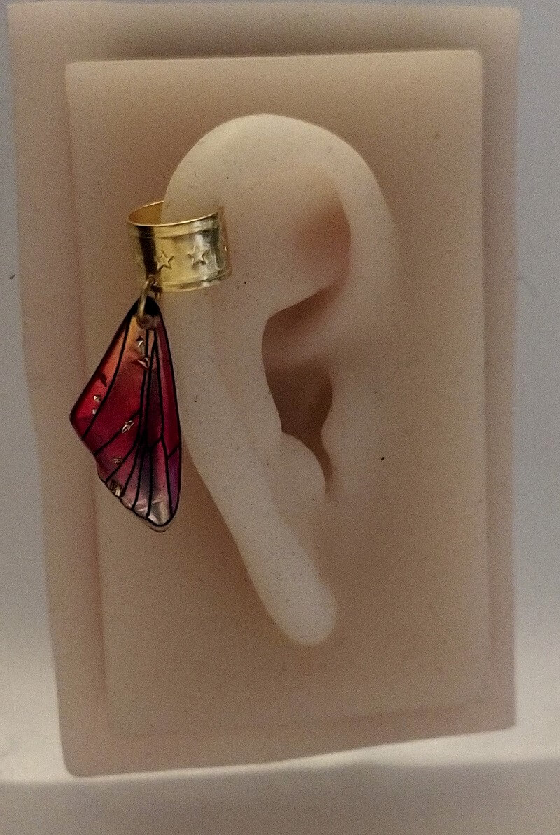 Jolie bague d’oreille aile de papillon orange, fuchsia et jaune holographique. Support laiton fantaiise réglable. Le pendentif est en résine.